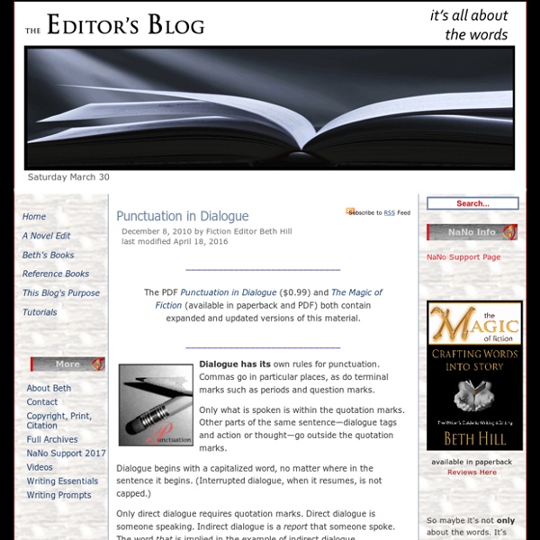 / How To Punctuate Dialogue With A Question Mark : How to Punctuate Dialogue | The Editor's Blog : (question marks and exclamation points are stronger than commas and periods.
